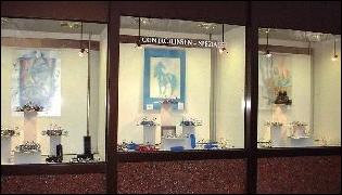 Die kleine Vernissage in Mitten des Warenangebotes übt eine zusätzliche Sogwirkung aus und fördert die Aufmerksamkeit des Betrachters. |